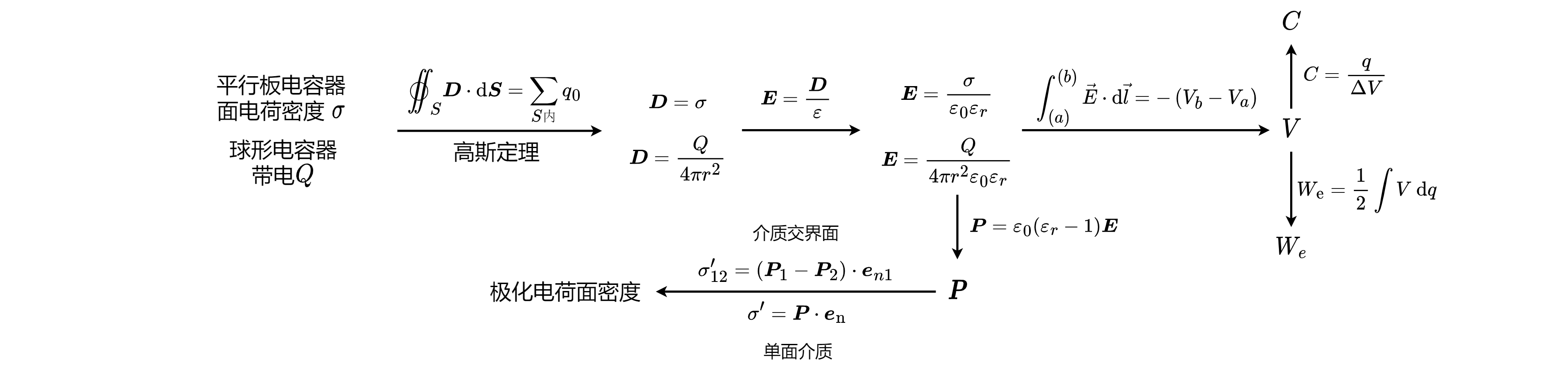 - 电偶极矩:$\vec{p}=q\vec{l}$